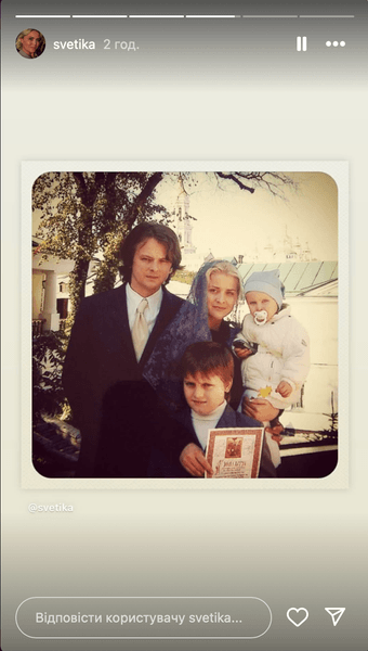 Светлана Евдокименко также показала несколько архивных кадров. В частности, она с мужем позировали с маленькими детьми на фоне храма, а также вместе с бабушкой Софией Ротару в домашней обстановке.