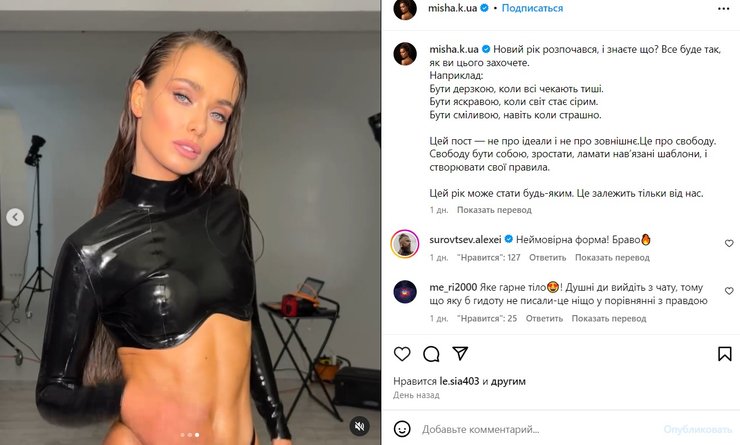 "Новый год начался и знаете что? Все будет так, как вы этого захотите. Например: Быть дерзкой, когда все ждут тишины. Быть яркой, когда мир становится серым. Быть смелым, даже когда страшно. Этот пост – не об идеалах и не о внешнем. Это о свободе. Свободу быть собой, расти, ломать навязанные шаблоны и создавать свои правила. Нынешний год может стать любым. Это зависит только от нас", – написала Ксения в публикации.