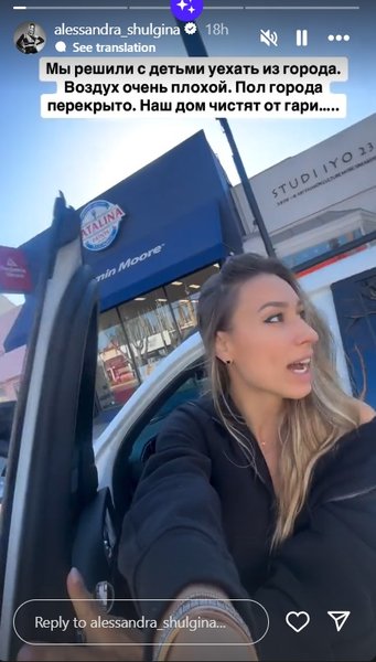 Шульгина приняла решение улететь из города ради здоровья своих дочерей, чтобы девочки не дышали гарью, запах которой стоит по всему Лос-Анджелесу. Их отец, организовавший им поездку, остается в городе, чтобы решать вопросы с домом.