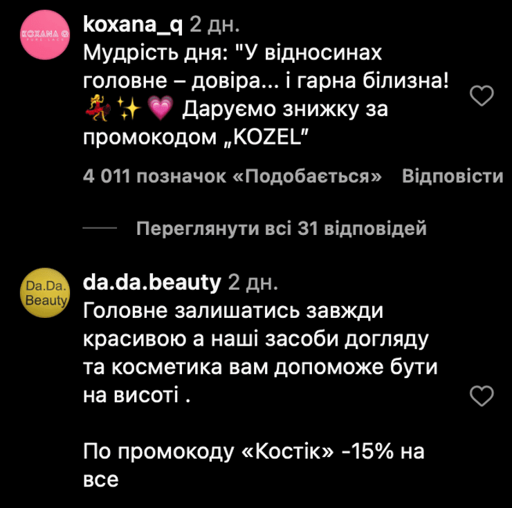Кроме этого, дарили промокод "козел" и советовали оставаться всегда красивой.