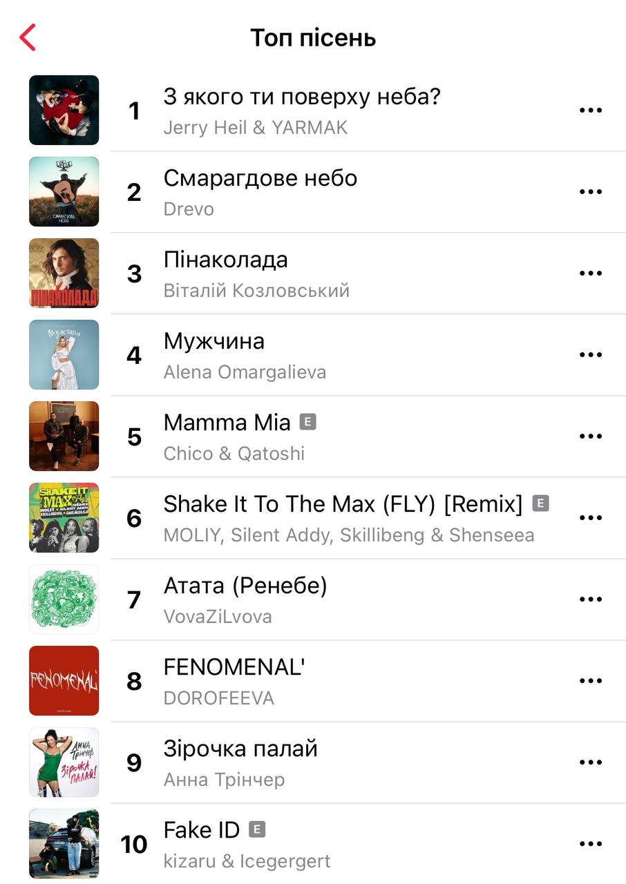 Первое место Apple Music забрала песня Ярмака и Jerry Heil "З якого ти поверху неба". Отметим, что топ песен часто обновляется в зависимости от прослушиваний пользователей платформы.