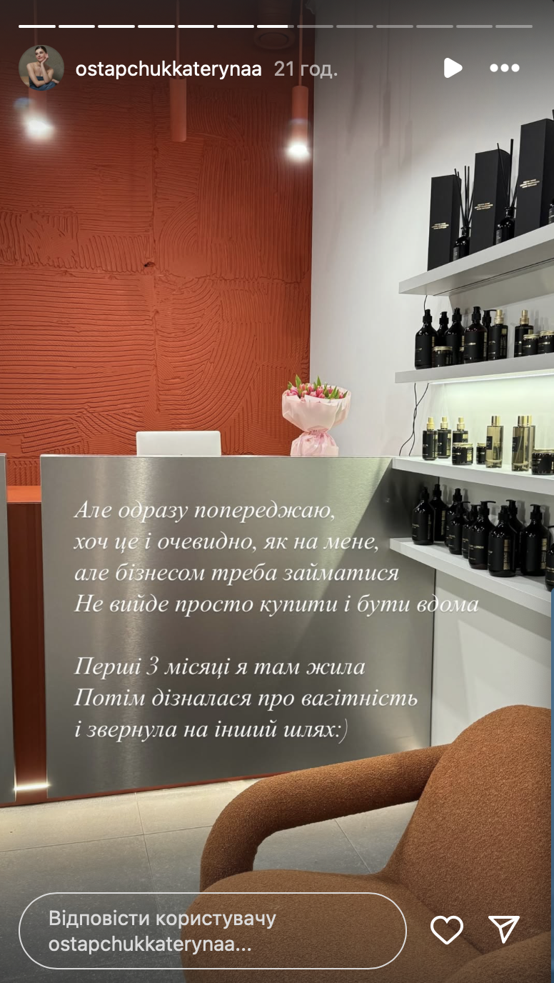 "Это был хороший опыт. Я отбила вложения. Она ни одного месяца не работала в минус. Несмотря на то, что после того, как я узнала о беременности, я не очень ею и занималась", — рассказала блогерша о своей студии.