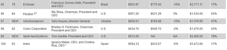 "Укроборонпром" находится рядом с американскими компаниями Peraton (96) и Cubic Corporation (98).