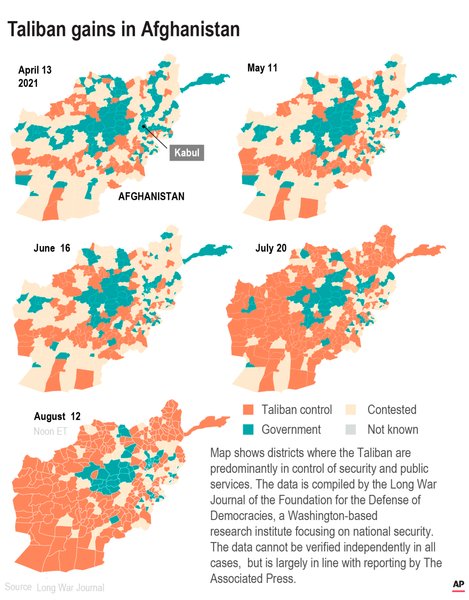 Перед этим талибы захватили Мазари-Шариф — город был одним из центров сопротивления правительства. Американские военные наносят авиаудары по позициям Талибана. Также Джо Байден анонсировал переброску дополнительных сил в Афганистан для обеспечения эвакуации.