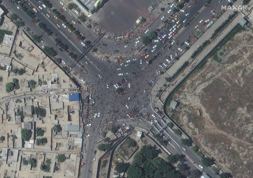 Изображение были сделаны 16 августа в 10:36 утра по местному времени. На них запечатлены тысячи людей у аэропорта, а также сотни машин, застрявших в пробках. Все они пытаются пробиться к самолетам, чтобы покинуть страну, которую захватили талибы.