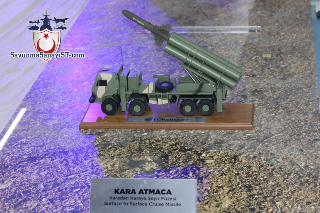 На выставке вооружения IDEF`2021 в Стамбуле турецкая компания Roketsan представила наземную версию ракетного комплекса Kara Atmaca. Об этом сообщает турецкое издание на военную тематику SavunmaSanayiST.