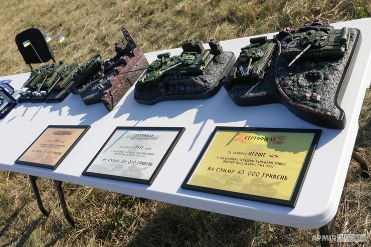 Лучшим танковым взводом в войсках стала отдельная механизированная 93 бригада "Холодный Яр". На втором месте оказались танкисты из отдельной танковой Сиверской бригады, а на третьем месте — отдельная механизированная бригада имени короля Данила. За первое место бойцы получили приз 45 тыс. За второе — 36 тыс., а за третье место — 27 тысяч гривен. Также предусмотрены сертификаты и медали за участие в соревновании.