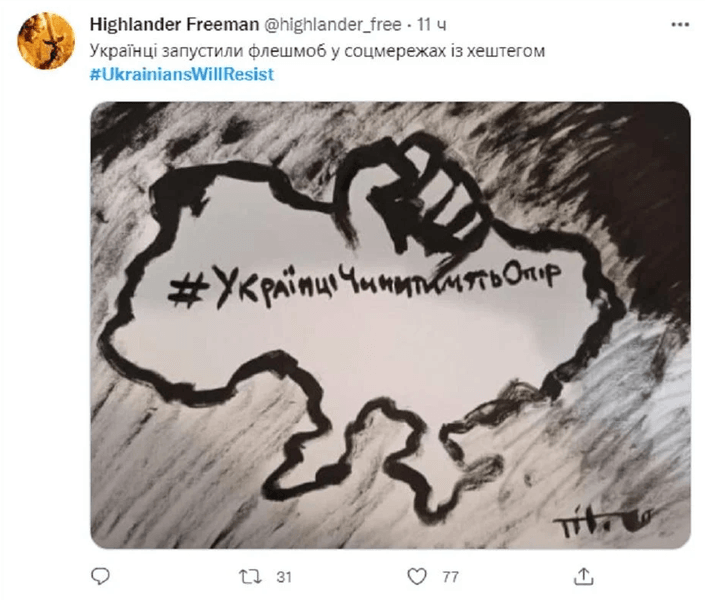 Хэштег переводится как "украинцы будут сопротивляться", он активно используется в Facebook и Twitter. По состоянию на утро 8 декабря в Twitter есть уже более 160 твитов. А в Facebook подобных публикаций уже свыше двух тысяч.