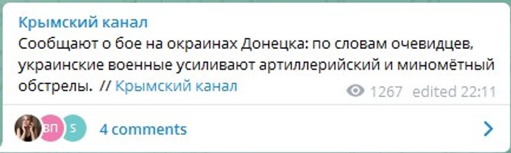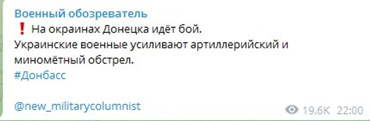 В Telegram сообщили об усилении обстрелов под Донецком. Штаб ООС призвал "не вестись на фейки РФ"