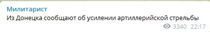 Несколько пророссийских Telegram-каналов вечером 11 февраля сообщили со ссылкой на очевидцев о якобы усилении артобстрелов на окраине временно оккупированного Донецка.