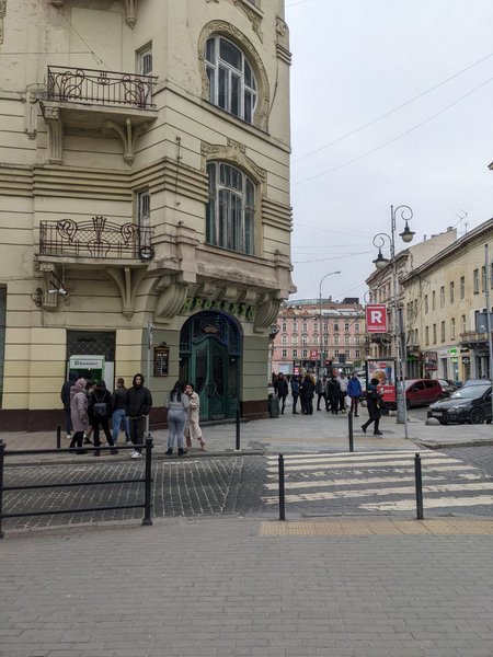 Во Львове 25 февраля во время сигнала воздушной тревоги местные продолжают гулять в центре. Укрытия есть, но не все открыты и не для всех. Продуктовые магазины работают, но по сокращенному графику. Есть небольшие очереди в аптеки и к банкоматам. Комендантский час с 22:00 до 6:00.