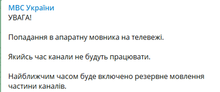 Двумя часами ранее Минобороны РФ предупредило о том, что уничтожит ретрансляционные узлы в Украине.