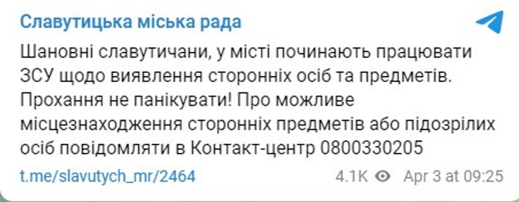 31 марта стало известно, что армия России покидает Славутич и движется в сторону Беларуси.