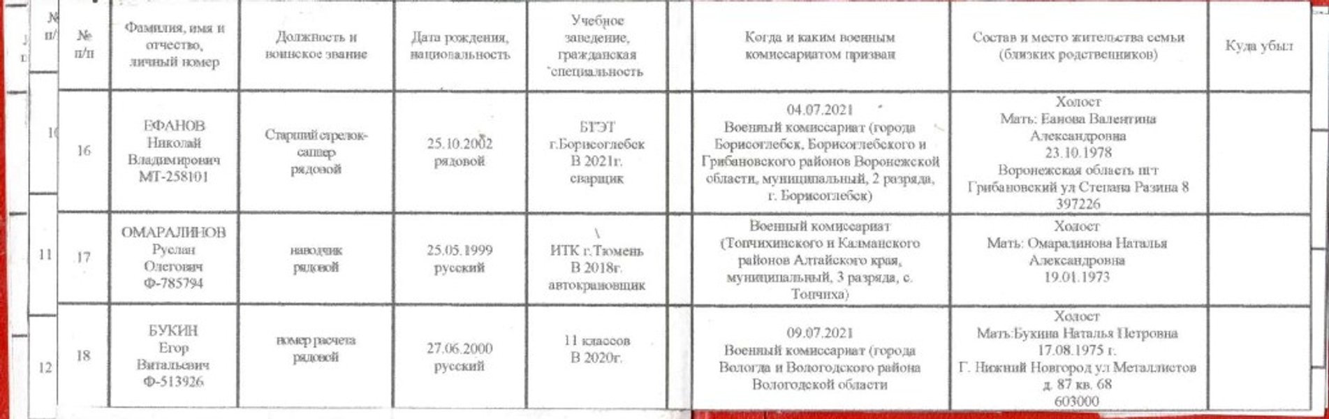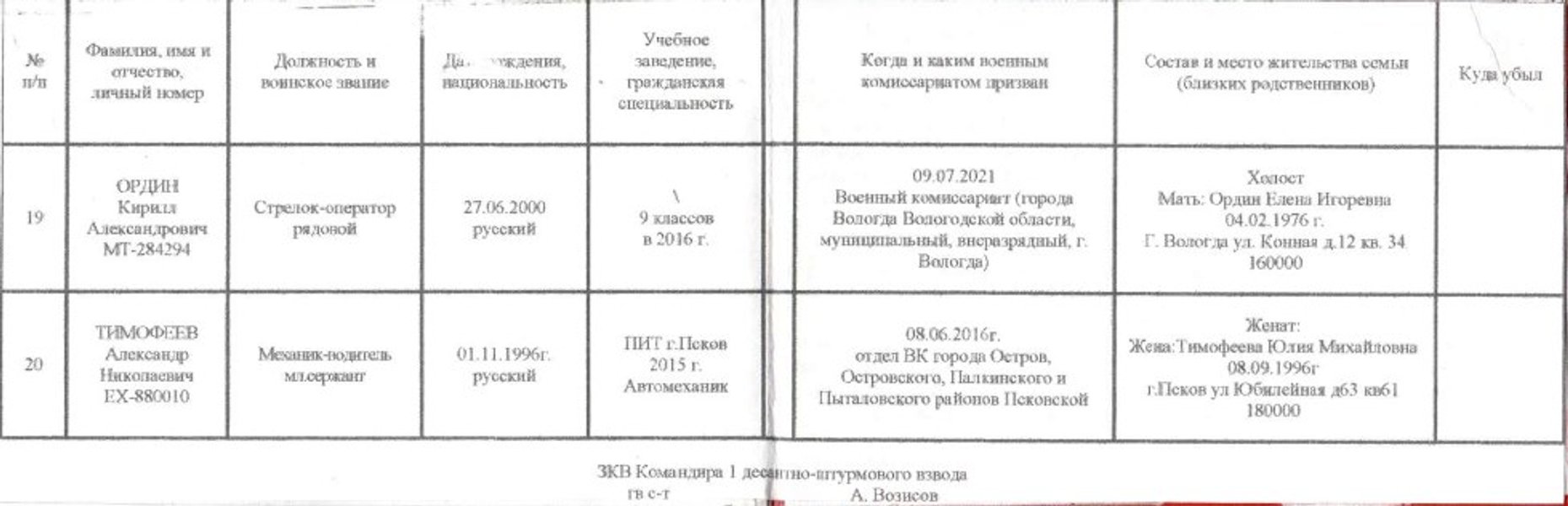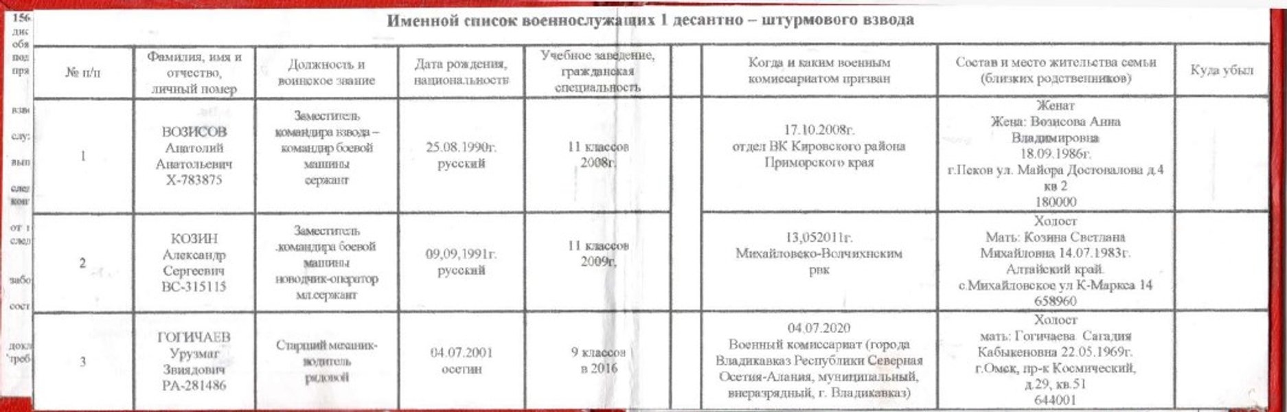 По информации разведчиков, преступления совершили военнослужащие 234-го десантно-штурмового полка из войсковой части 74268. В перечне можно увидеть инициалы и даты рождения оккупантов, должность и воинское звание, а также место жительства их семей.