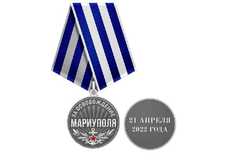 На медали дата "освобождения" города — 21 апреля, когда глава Минобороны РФ Сергей Шойгу доложил Владимиру Путину о "взятии" города. При этом в Мариуполе до сих пор находятся украинские защитники на территории завода "Азовсталь", ожесточенные бои продолжаются.