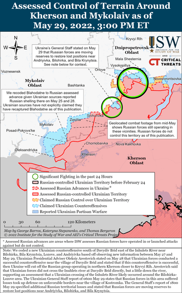 По мнению военных экспертов Каролины Херд, Мейсона Кларка и Джорджа Барроса, контратаки ВСУ, вероятно, направлены на то, чтобы сорвать усилия России по созданию сильных оборонительных позиций на южном направлении.