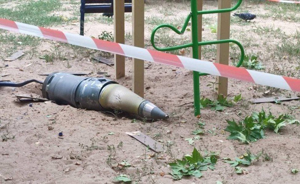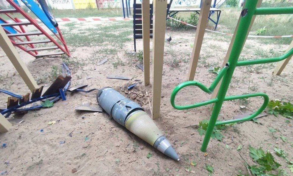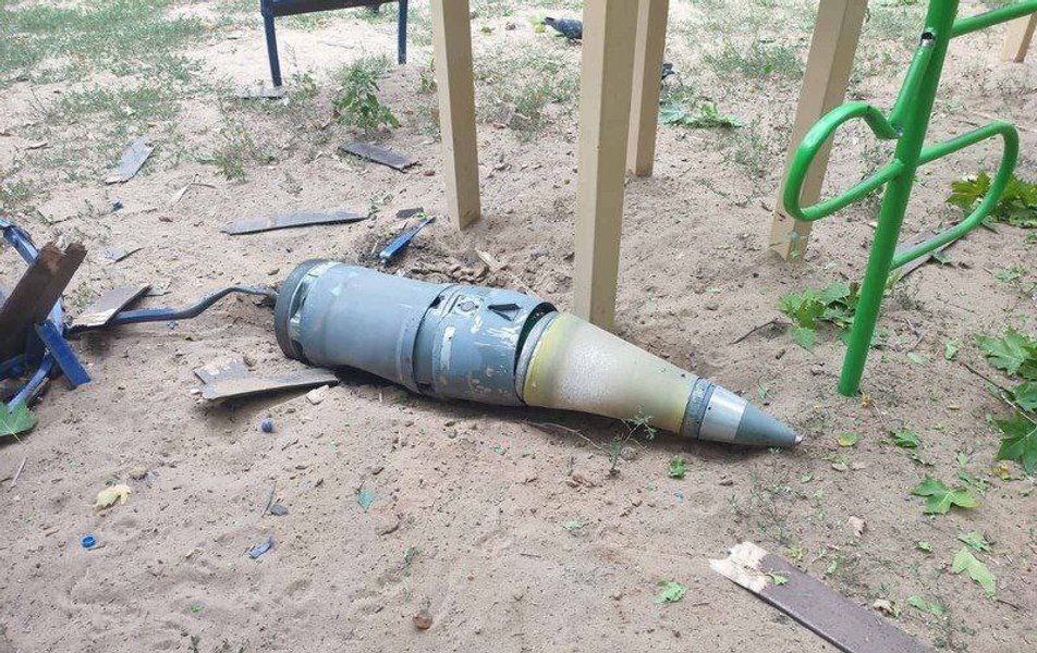 Очевидцы публикуют фото снаряда, который упал на детскую площадку, но не разорвался.