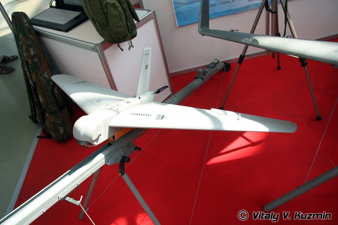 Второй беспилотник "Элерон-3" — это комплекс ближнего радиуса действия, предназначенный для ведения разведки. Разработан предприятием ЭНИКС. На вооружение ВС РФ поступил в 2012 году.