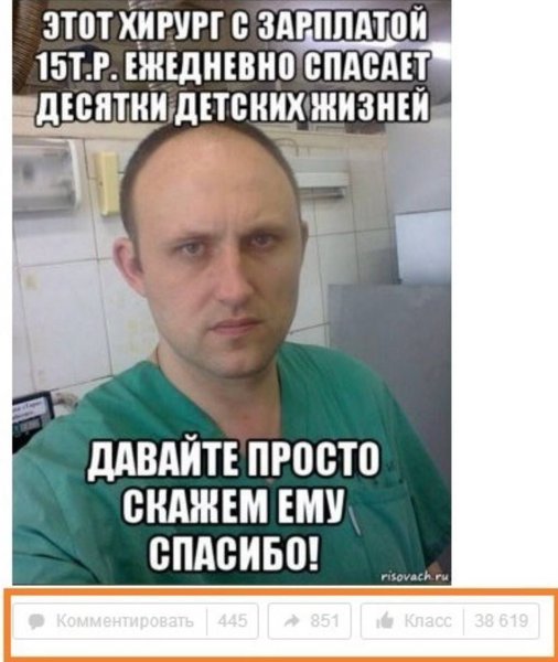 В 2016 году в сети разлетелась фотография Ивана Горбачеве в костюме хирурга с надписью "этот человек с зарплатой в 15 тыс. спасает десятки детских жизней, давайте скажем ему спасибо". Фото завирусилось и собрало много лайков в других соцсетях.