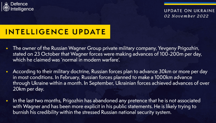 По данным Института изучения войны, Евгений Пригожин пользуется зависимостью президента РФ от сил ЧВК "Вагнер". Они не отвечают за какую-либо конкретную область на фронте в Украине, однако не могут значительно продвинуться в районе Бахмута с начала лета.