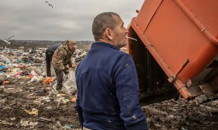 45-летняя Светлана, которая вместе со своим мужем Александром годами возит мусор на свалку на своем грузовике, рассказала, что на въезде был установлен российский блокпост.