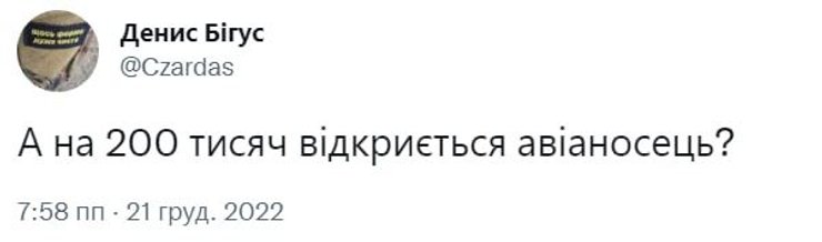 Так, журналист Денис Бигус предположил, что Украина сможет рассчитывать на авианосец при 200 тысячах ликвидированных россиян.