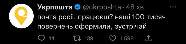Флешмоб подхватила "Укрпошта", которая обратилась к "Почте России" с предложением встретить 100 тыс. украинских отправлений.