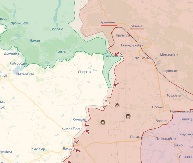 Он опроверг сообщения о том, что украинские военные якобы освободили Кременную или уже зашли на окраины населенного пункта. Однако, по его словам, бои идут недалеко от города.