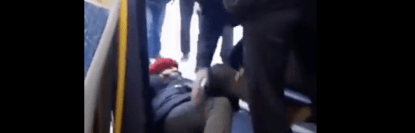 На записи, опубликованной ресурсом WarTranslated, мужчина тянет лежащую на полу женщину за ноги. В то время как другие пассажиры ее оскорбляют.