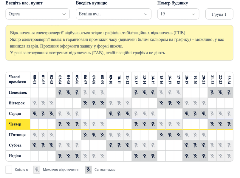 Графики отключений для Одесской и других областей Украины публикуются на сайте ДТЭК.