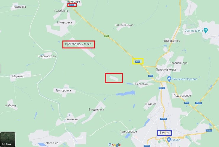 Также в сводке упомянуты бои в районе Орехово-Васильевки и Дубово-Васильевки. Эти населенные пункты расположены северо-западнее Бахмута и южнее трассы, ведущей на Славянск. Таким образом одна из ключевых дорог для снабжения Бахмута возможно находится под огневым контролем противника.