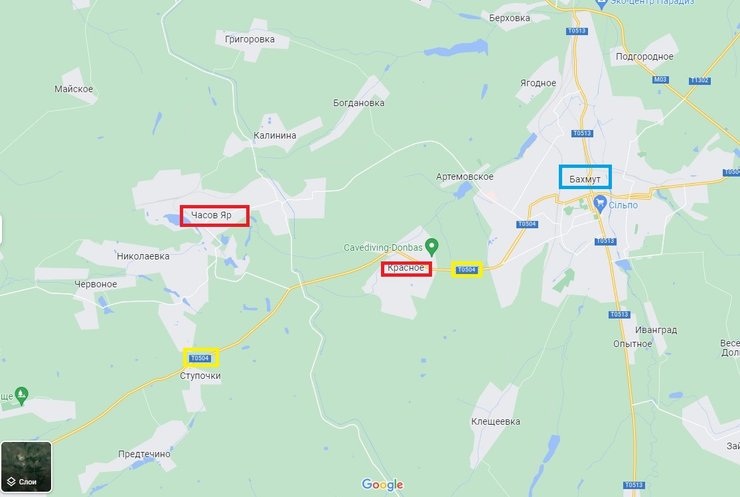 Отметим атаку на Красное и Часов Яр, до которого ранее силы оккупантов не доходили. Через эти населенные пункты проходит автотрасса Т 0504, соединяющая Бахмут и Константиновку.