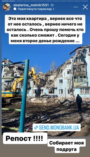 "Здесь когда-то была квартира, а сейчас руины. Не верится", — подписала Екатерина фото завалов.