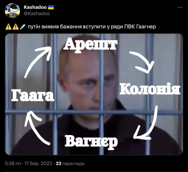 Международный уголовный суд в Гааге выдал ордер на арест президента России. В соцсетях молниеносно отреагировали мемами, предложив главе Кремля "карьеру" наемника ППК "Вагнер".