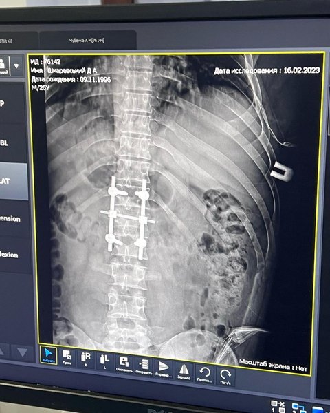 В больнице Дмитрию Шкаревскому поставили диагноз — перелом позвонка в поясничном отделе и многочисленные обсколочные ранения.