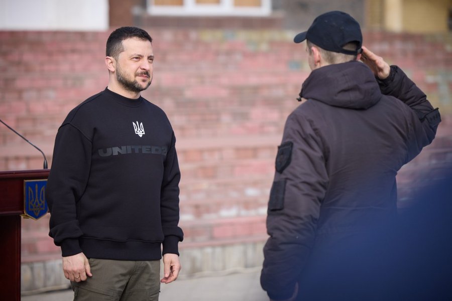 Президент Владимир Зеленский посетил Сумскую область, где наградил защитников Украины по случаю годовщины героической обороны города Ахтырка от ВС РФ.