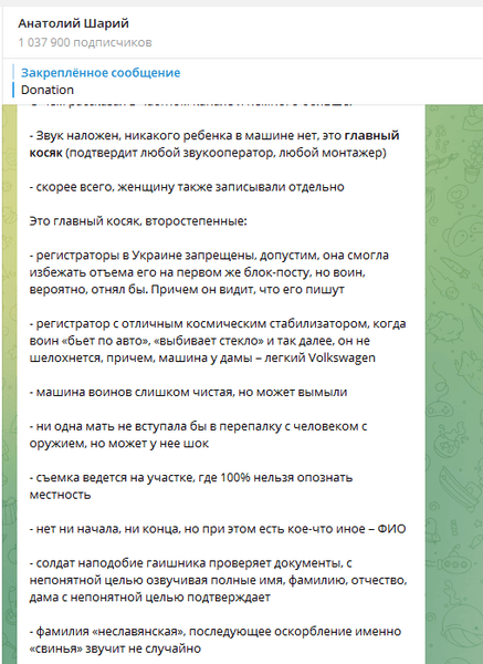 Одним из первых развенчивать фейк принялся известный блогер Анатолий Шарий. Он привел целый список фактов, почему это все — плохо срежиссированная постанова.