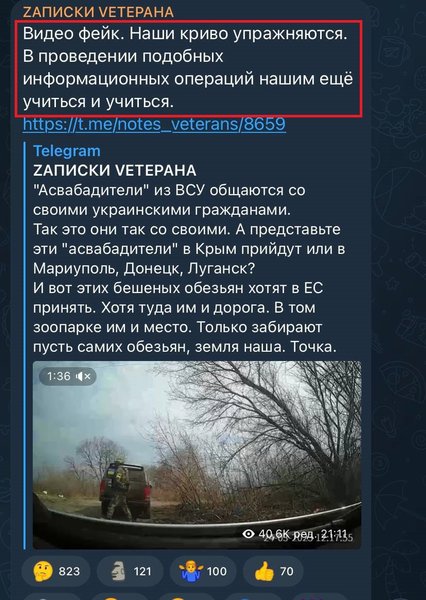Разведчики называют видео примитивным фейком и указывают на аргументы, свидетельствующие о постановочности видео.