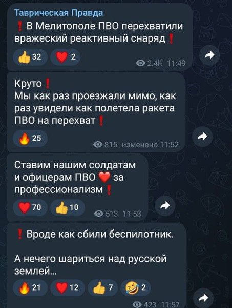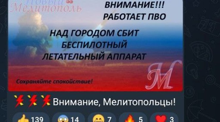 В местных пабликах пишут, что оккупанты снова "завели шарманку" об успешной работе противовоздушной обороны.