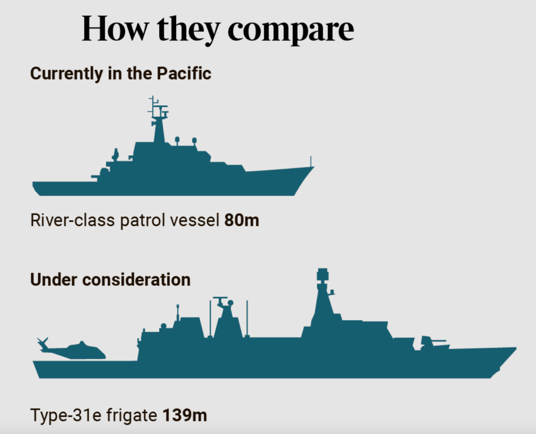 Сравнение размера патрульных кораблей, которые сейчас находятся в Индо-Тихоокеанском регионе с новым фрегатом