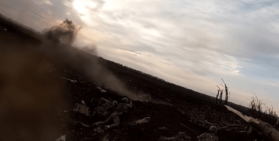 Бойцы дают отпор российским оккупантам, которые вплотную приближаются к позициям, из всего имеющегося оружия, применяя автоматы, гранатометы и гранаты.