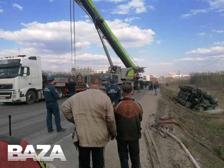 Грузовик перевернули, но у него оказались сломанными тормоза, поэтому тягач решили оставить на месте под охраной полицейских и военных.