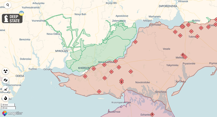 Согласно утренней сводке Генштаба ВСУ от 27 апреля, на Запорожском и Херсонском направлениях противник "засел" в обороне. В то же время, оккупанты совершили обстрелы более 30 населенных пунктов. Среди них — Гуляйполе, Железнодорожное, Малая Токмачка, Новоандреевка и Каменское Запорожской области; Берислав, Казацкое, Токаревка, Антоновка, Белозерка, Береговое Херсонской области, а также город Херсон.