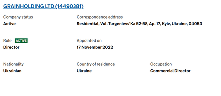 В документах компании говорится, что капитал Grainholding составляет 1 миллион фунтов стерлингов, причем половина акций принадлежит Сальдо, а остальные — другому украинцу, имя которого издание не сообщает.