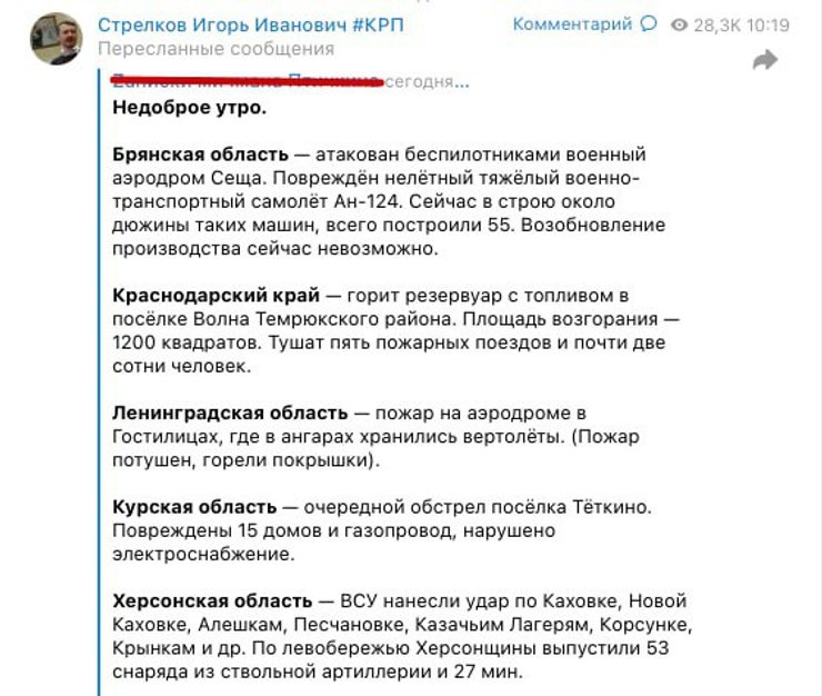 Бывший главарь пророссийских боевиков обнародовал неутешительную сводку за прошедшие сутки и отметил, что взрывы и диверсии зафиксированы сразу в 4 регионах РФ.