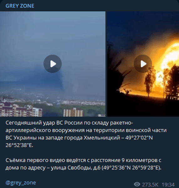 В частности издание приводит пример российского медиа Grey Zone, которое 13 мая сообщало точные координаты расположения украинской артиллерии в городе Хмельницкий. В сообщении также были указаны и координаты дома, на котором установлена камера наружного наблюдения.