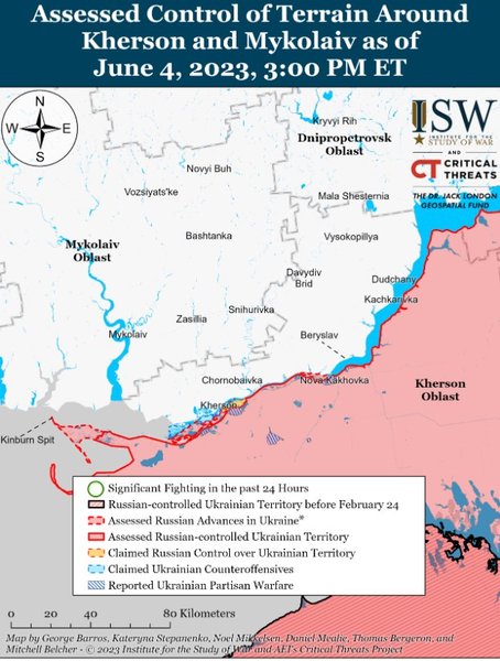 Геолокационные данные, опубликованные 4 июня, показывают, что механизированные украинские войска продвигались достаточно ограниченно к северо-востоку от населенного пункта Ривнополь. Российские военные блоггеры заявляли, что подразделения ВСУ наступали в направлении Макаровки (в пределах 4 км юго-западнее Великой Новоселки) и Приютного (15 км юго-западнее Великой Новоселки), а также захватили Новодаровку (14 км юго-западнее Великой Новоселки) и Нескучное (2 км юго-западнее Великой Новоселки).