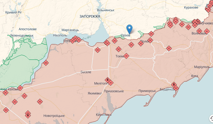 На Запорожском направлении в районе города Орехов российские оккупационные войска ведут активную оборону. Об этом в четверг, 8 июня, сообщила заместитель министра обороны Украины Анна Маляр в своем Telegram-канале.