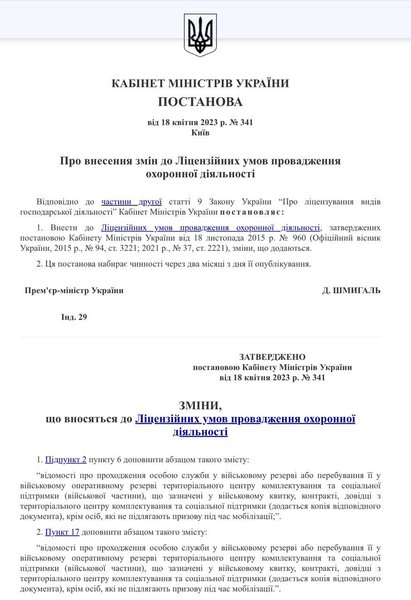 Сначала – в военкомат: подлежащие мобилизации украинцы не смогут работать охранниками (документ)