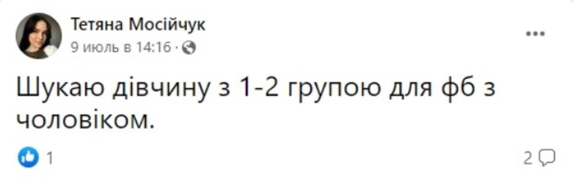 Мужчины в этих группах тоже пишут, что ищут украинок с документами, подтверждающими инвалидность. Этот и позволит оформить фиктивный брак. Преимущественно ищут тех, у кого есть II или III группа.